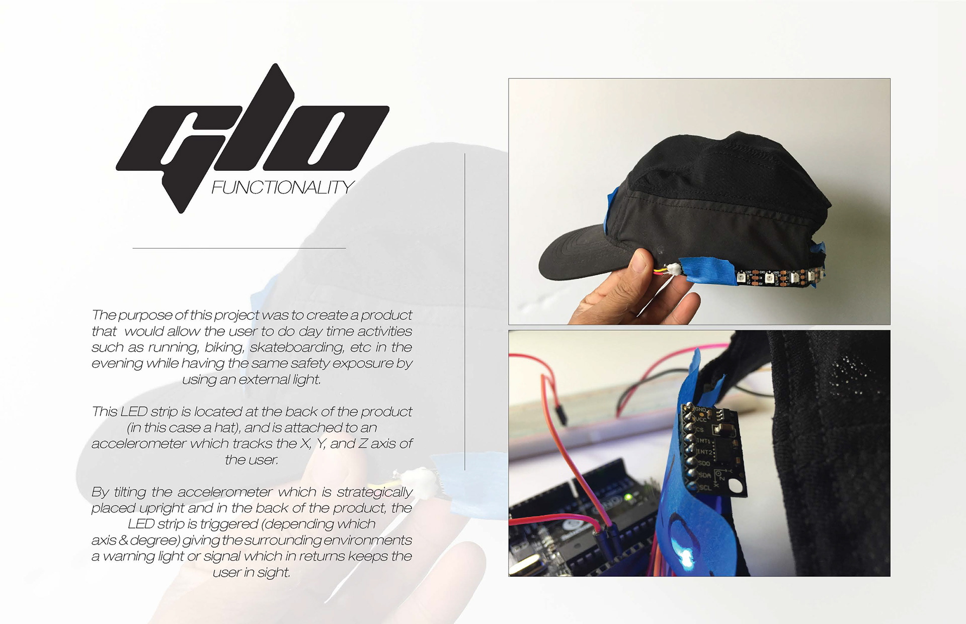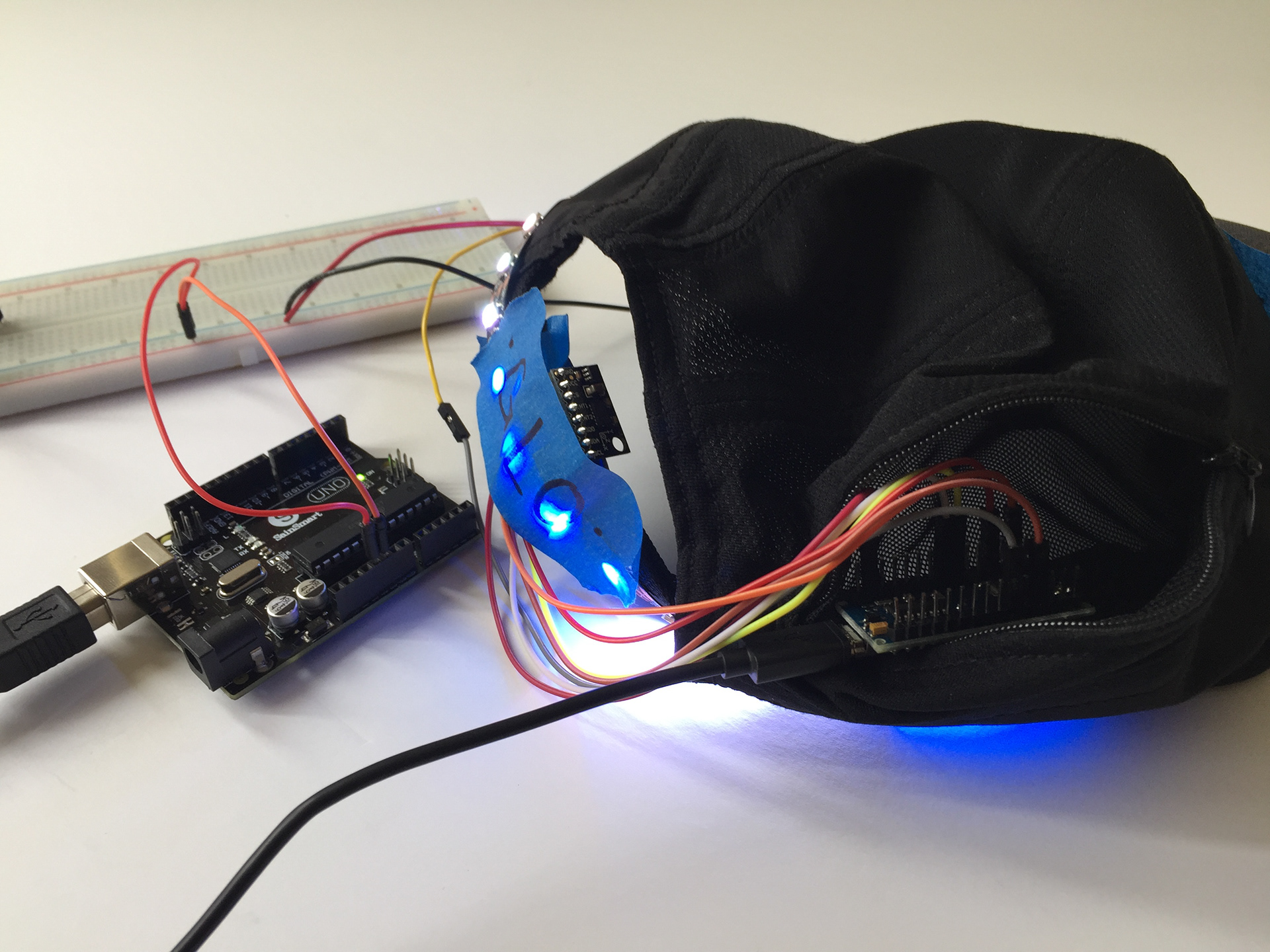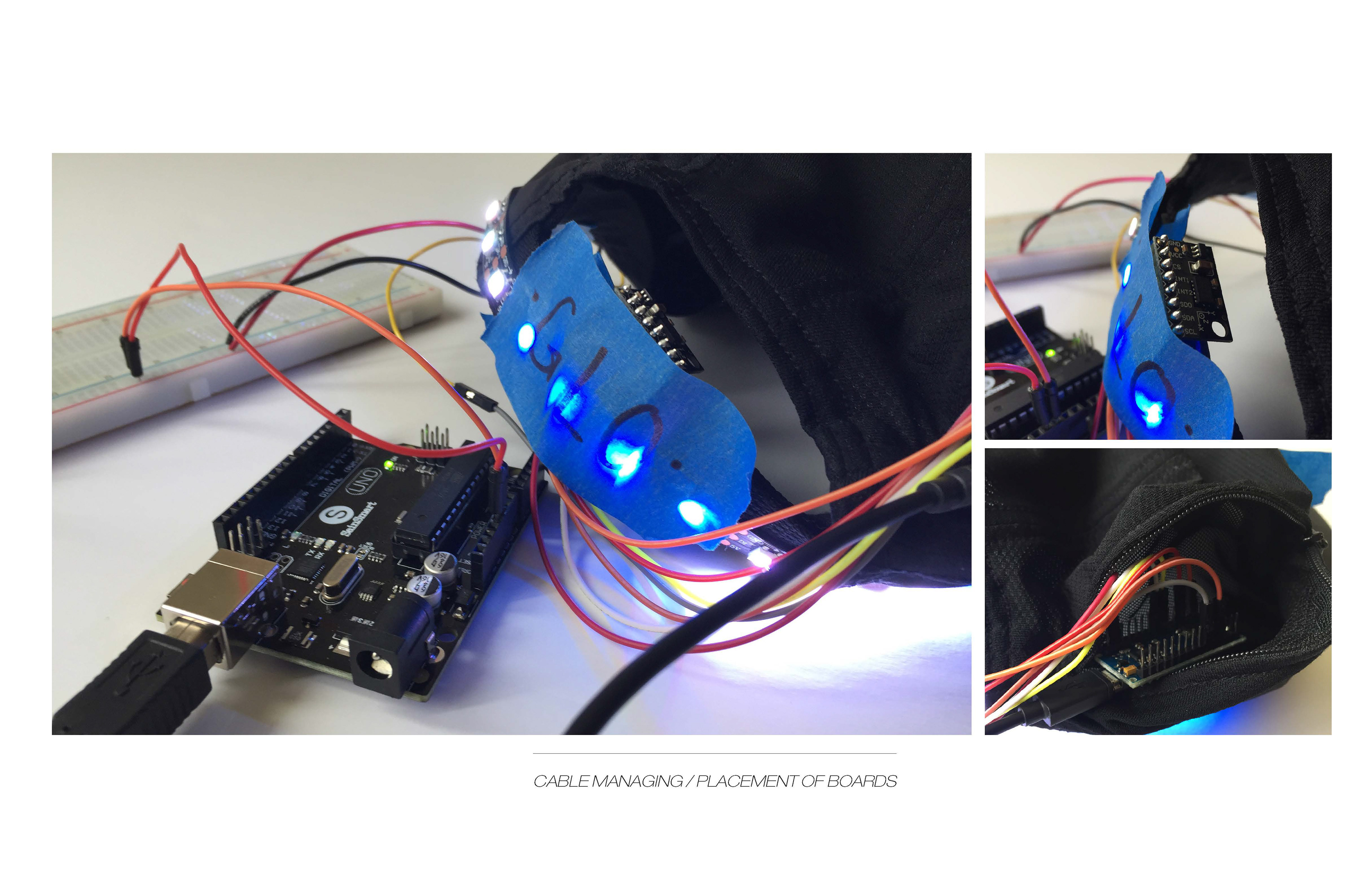 Wearable textile driven by technology to improve safety of user. By combining two existing products accompanied by ARDUINO (code), a new product was created.